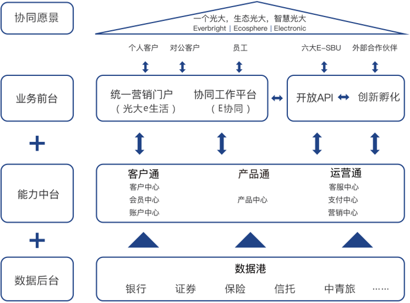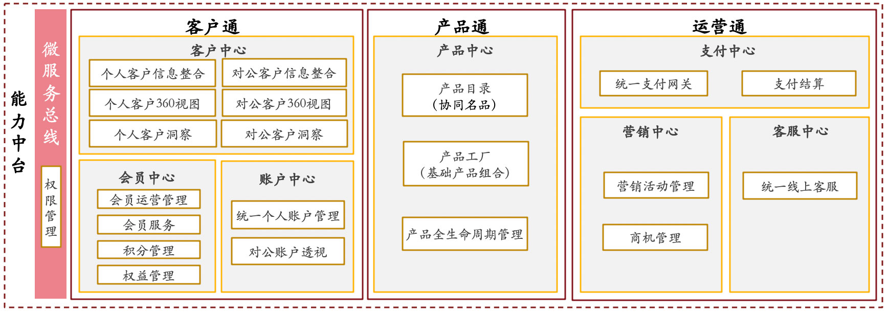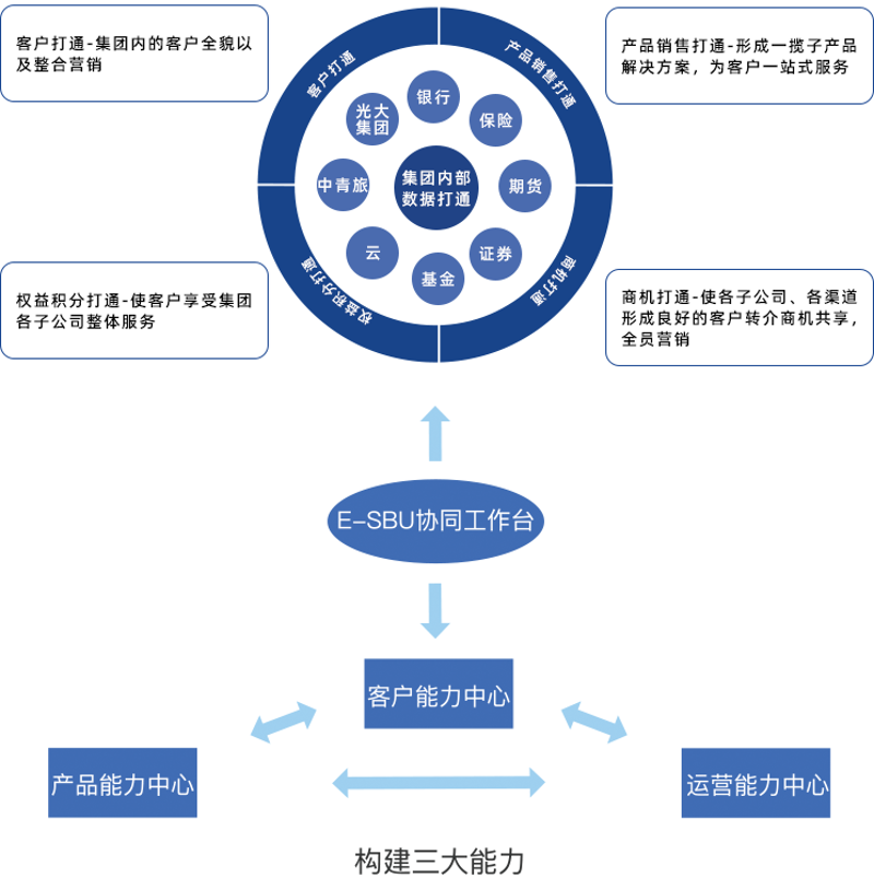 通過(guò)打造智能協(xié)同平臺(tái),構(gòu)建客戶(hù)、產(chǎn)品、運(yùn)營(yíng)三大能力中心,實(shí)現(xiàn)客戶(hù)、產(chǎn)品、商機(jī)、營(yíng)銷(xiāo)、權(quán)益資源的共享,拉通內(nèi)部企業(yè)和外部合作伙伴,建設(shè)合作共贏的生態(tài)圈。