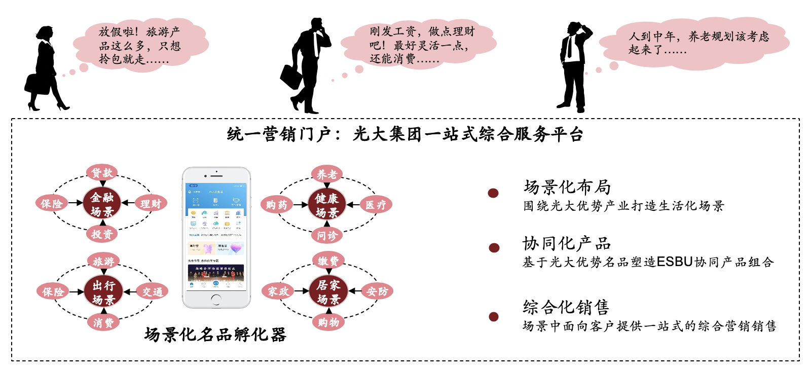 統(tǒng)一營(yíng)銷(xiāo)門(mén)戶(hù)對(duì)外定位于集團(tuán)的一站式綜合服務(wù)平臺(tái),對(duì)內(nèi)定位于集團(tuán)的場(chǎng)景化名品孵化器,借助場(chǎng)景化的組合名品為C端客戶(hù)提供一站式綜合解決方案。