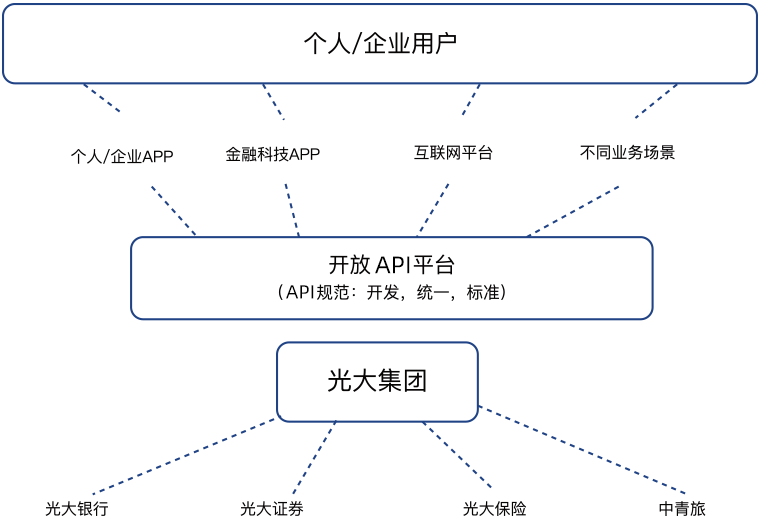 集團級開放API平臺,實現(xiàn)對內(nèi)、對外的雙向打通。