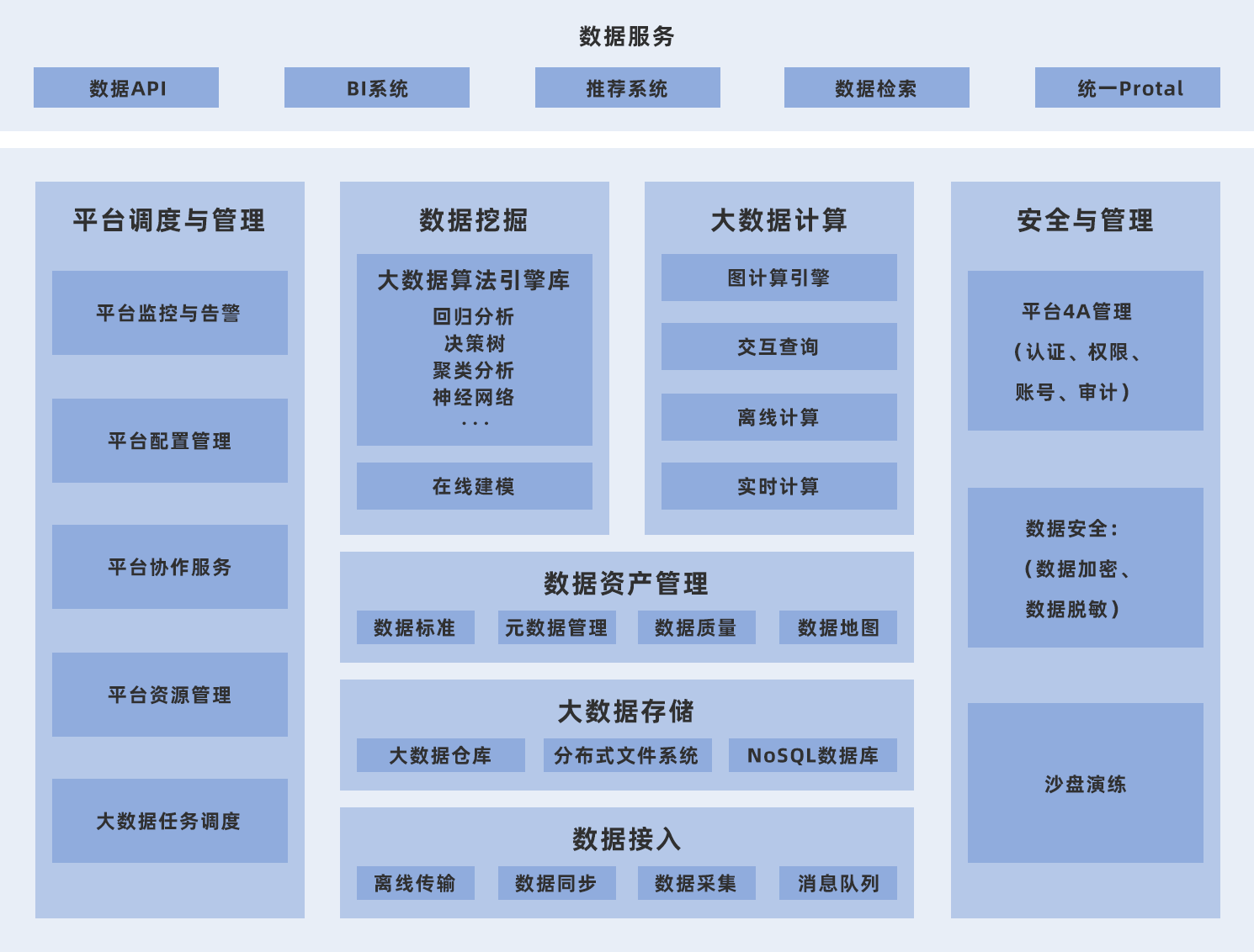 一站式的可視化運(yùn)維管理平臺。包含多平臺分布式集群管理、完備的監(jiān)控及應(yīng)用性能的分析、豐富的可視化運(yùn)維工具、實(shí)現(xiàn)復(fù)雜多條件告警,能對告警日志集中分析、完善的面向多租戶的計(jì)算資源管控體系和完善的用戶權(quán)限管理體系為客戶提供企業(yè)級的大數(shù)據(jù)平臺運(yùn)維管理能力支撐。
