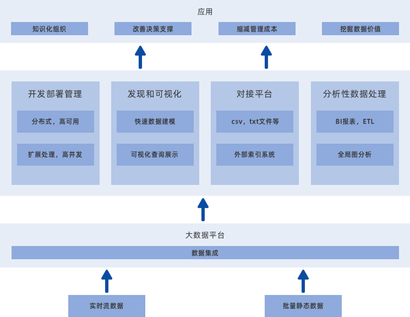 提供完善的API,能夠和其他平臺完成對接和交互,其他平臺可通過API形式調(diào)用圖數(shù)據(jù)庫查詢結(jié)果,支持各種后端存儲系統(tǒng),通過集成大數(shù)據(jù)平臺,支持全局圖數(shù)據(jù)分析、報表、ETL等。